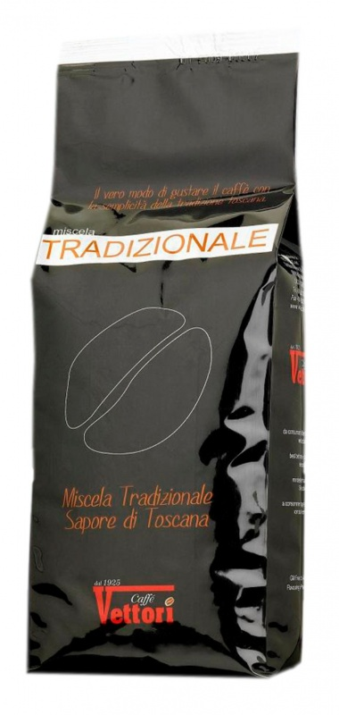Vettori Tradizionale je nejsilnější káva ze sortimentu pražírny Vettori. Vettori Tradizionale je velmi silná, divoká a především velmi dobrá 100% Robusta pro milovníky opravdu silné kávy plné a přetrvávající chuti. Vettori Tradizionale je káva pražená dle staré toskánské tradice. Protože se jedná o nejsilnější kávu z řady Vettori a navíc 100% robustu, doporučujeme tuto kávu pít ráno a dopoledne. Vettori Tradizionale je káva pro ty, kteří nedělají kompromisy. Kávová zrna jsou původem z Afriky.