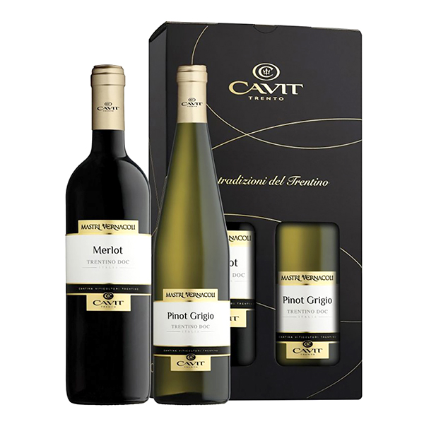 Mastri Pinot Grigio DOC & Merlot DOC dárkový set je perfektní dárek pro milovníky italských vín. Tento set obsahuje dvě lahve kvalitních vín z oblasti Veneto, které jsou vyrobeny z odrůd pinot grigio a merlot. Tato vína jsou charakteristická svou jemností, ovocností a vyvážeností. Mastri Pinot Grigio DOC je bílé víno, které má světlou slámovou barvu, vůni citrusů a květin. V chuti je suché, osvěžující a harmonické. Má rubínovou barvu, vůni červených plodů a koření. V chuti je polosuché, sametové a dlouhotrvající. Tato vína jsou ideální na doprovod jídel z bílého masa, ryb, těstovin nebo sýrů.