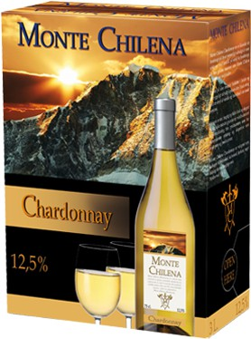 Monte Chilena Chardonnay je klasické víno lehce zlaté barvy s jemnými nuancemi v praktickém balení bag-in-box. Jemná a harmonická chuť se špetkou vanilky a lískových oříšků. Hodí se k vepřovému, telecímu a drůbežímu masu, uzenému lososu a sýrům s chutí ořechů. Teplota podávání 7-8 °C. Alkohol 12,5%.