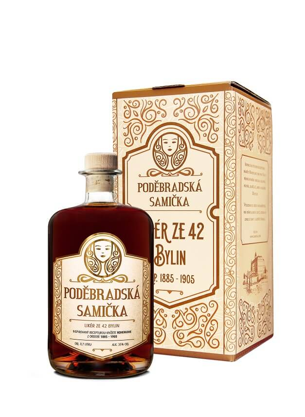 Lahodný hořkosladký likér inspirován recepturou hraběte Hohenlohe. Delikátně vyvážená chuť jalovce, pelyňku, zeměžluče, kmínu a dalších 38 bylin. Příbeh samičkyKoncem 19. století se kníže Filip Arnošt Hohenlohe z Schillingsfürstu přestěhoval na poděbradský zámek, který nechal opravit a spolu se svou ženou se tu rád zdržoval po celý rok. Z rodného Bavorska si kníže přivezl i recepturu jedinečného bylinného likéru obsahujícího jalovec, pelyněk, či zeměžluč. Na doporučení místního lékaře Dr. Boučka jej popíjel při každé snídaní na lačno. Na zámku se likéru říkalo Weibchen, což si český personál volně přeložil jako Samička. Nedlouho poté se vznikly v Poděbradech lázně a město se rychle proměnilo ve vyhledávané lázeňské středisko. K oblibě hojně navštěvovaného města přispěli ochotně i místní živnostníci, kteří se rychle přizpůsobili potřebám lázeňských hostů. Jedním z nich byl i pekař a kavárník Josef Váňa, který zde otevřel útulnou kavárnu, kam lákal hosty nejen na vyhlášenou kávu a pečivo, ale i na zdravotní likér v té době už široko daleko známý jako Samička, který začal připravovat podle osvědčeného receptu získaného od zámeckého personálu.Po znárodnění v roce 1948 se Váňově kavárně už nikdy nevrátila uvolněná atmosféra prvorepublikových poděbradských lázní a starých dobrých časů. Přesto se doposud zachovala vzpomínka v podobě původního receptu, který si kavárník Váňa ve svých začátcích opsal přímo od pamětníka knížete Hohenlohe ze zámku.Na originální recept se podařilo navázat v roce 2017. Lázeňští hosté si tak mohou Poděbradskou Samičku znovu dopřát po více než 100 letech od jejího vzniku!