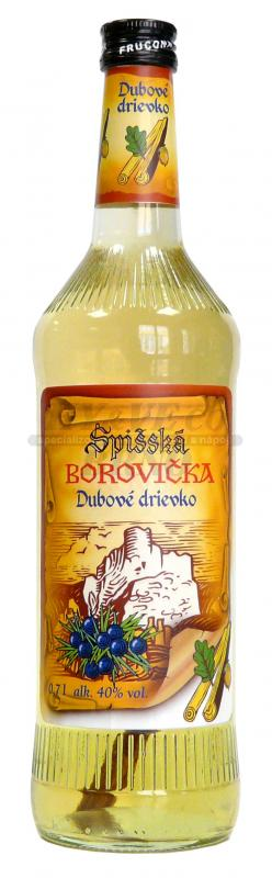 Spišská borovička je lehká svěží borovička s mimořádně oblíbenou recepturou, vyrobená z borovičkového destilátu překvašených jalovčinek s přidáním kvalitního jemného lihu a chutné měkké vody ze svahů Povážského Inovce.