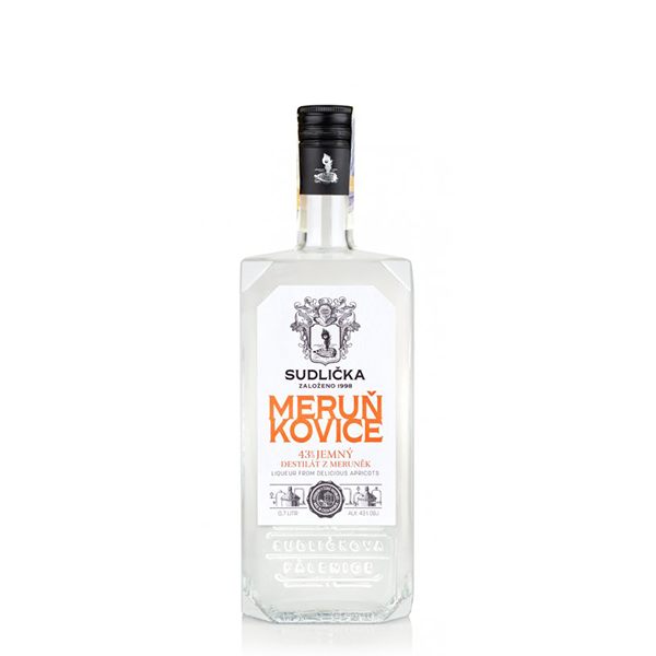 Hruškovice Sudlička 50% 0,7l je čistá ovocná pálenka z vyzrálých meruněk. Obsah alkoholu je 43%. Vyrábí se z kvalitních meruněk, které jsou velmi pečlivě vybírány a tříděny. Meruňkovice je jemná a středně aromatická. Doporučená teplota skladování je 10-18 °C.