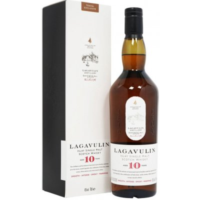 Whisky Lagavulin 10yo 43% 0,7l je skvělým dárkem pro všechny milovníky skotské whisky. Whisky Lagavulin 10yo je zrálá deset let v kombinaci ex-bourbon, re-fill a nově oživených sudů. Tím získává jantarovou barvu a komplexní vůni s tóny vanilky, karamelu, citrusů, mořské soli a rašeliny. V chuti je plná, sladká a kořeněná s náznaky ovocného koláče, medu, pepře a dřeva. Závěr je dlouhý, hřejivý a kouřový s náznaky jódového obvazu, sladu a vanilky. Whisky Lagavulin 10yo je ideální pít samotnou nebo s kapkou vody.
